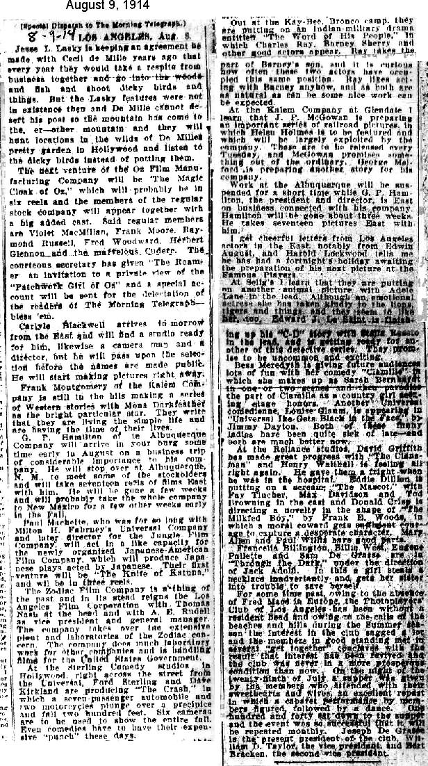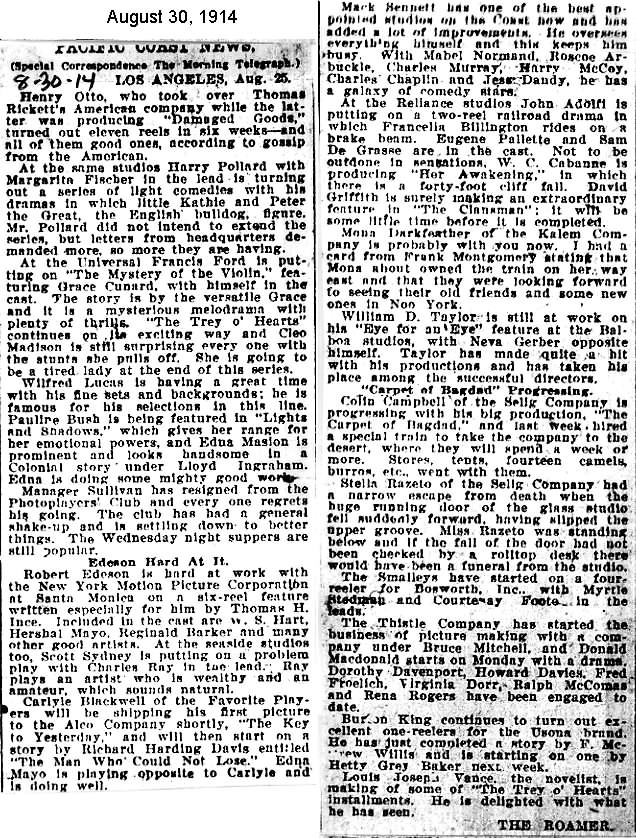 Silent Era Home Page  >  Taylorology  >  Press Archive  >  New York Morning Telegraph 1914-1922  >  1914