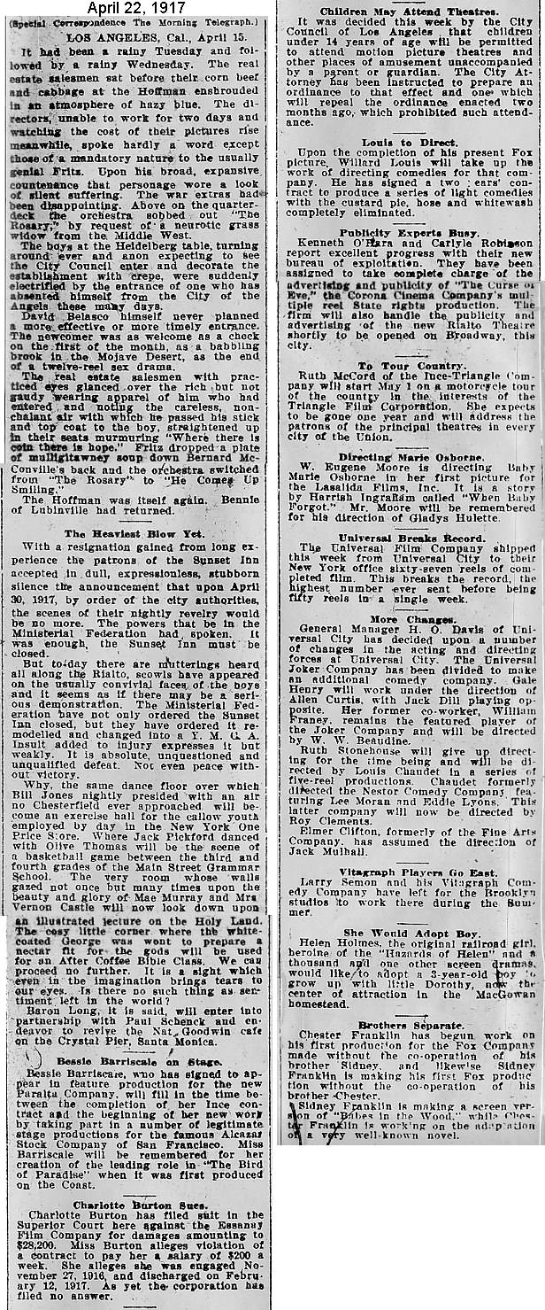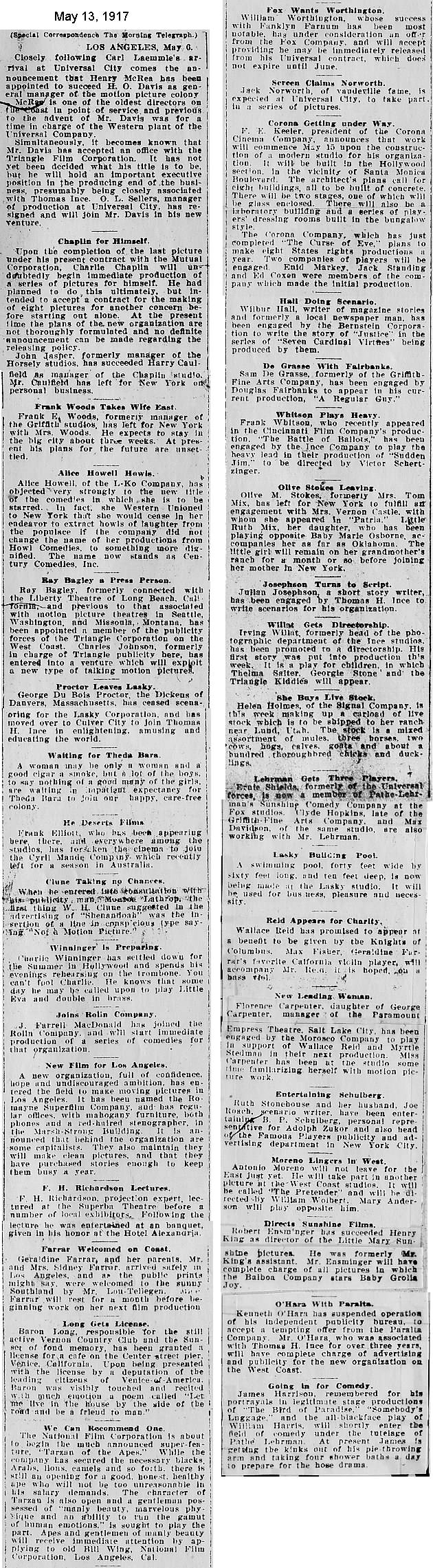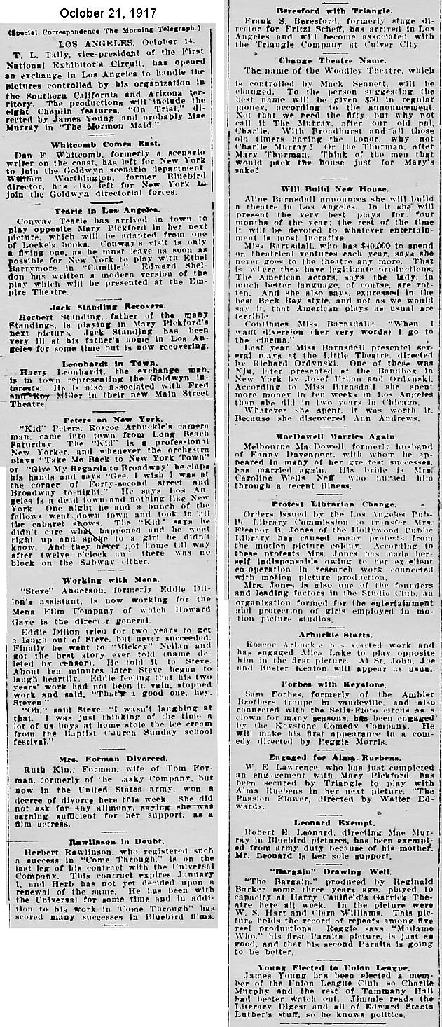 Silent Era Home Page  >  Taylorology  >  Press Archive  >  New York Morning Telegraph 1914-1922  >  1917